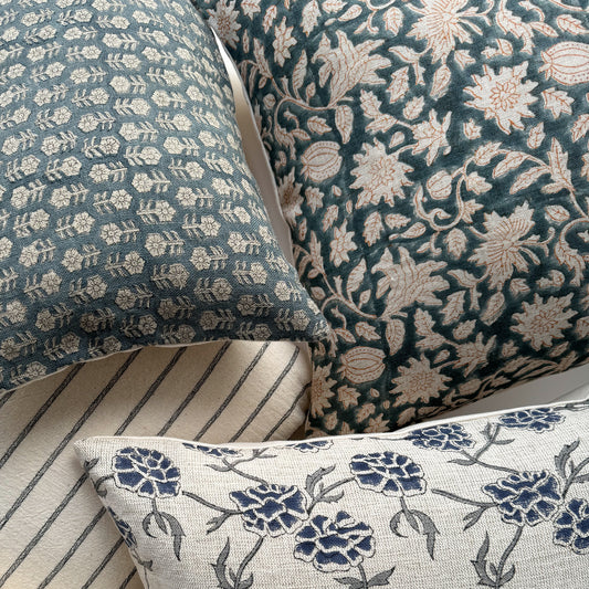 Delicate Joy Hand Block-Printed Cushion Cover – Blue