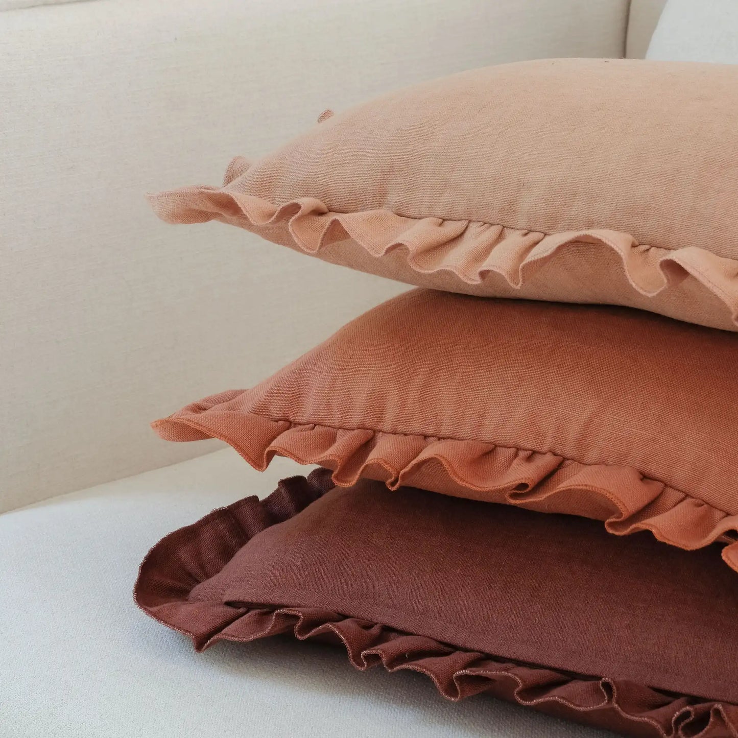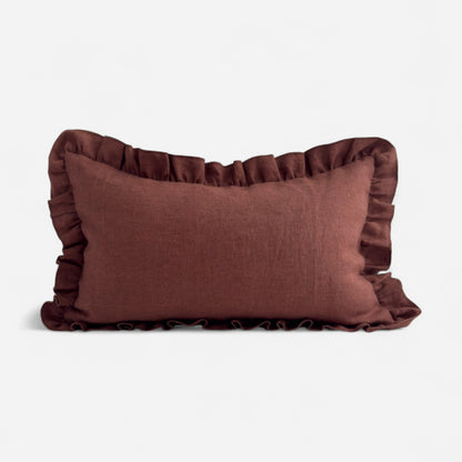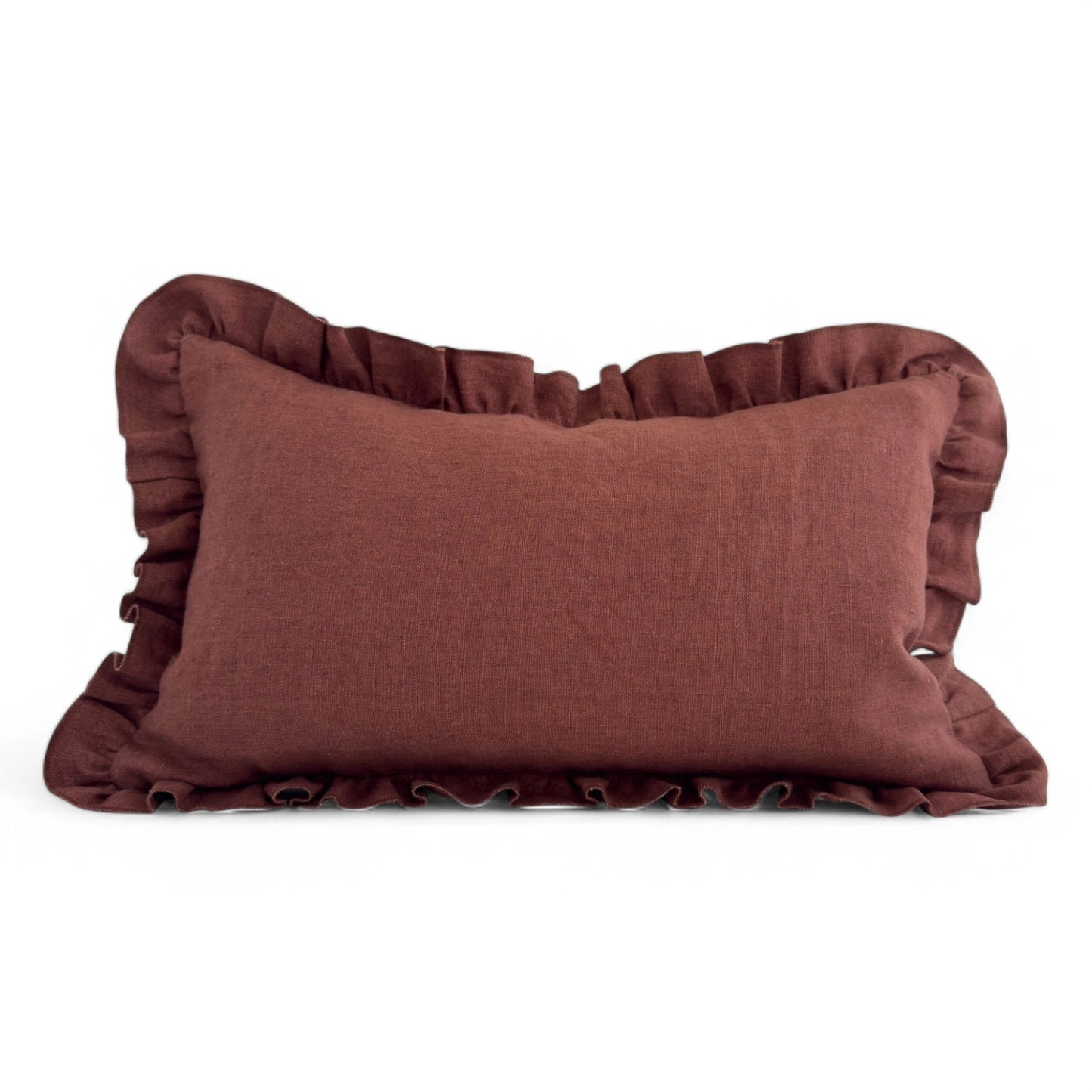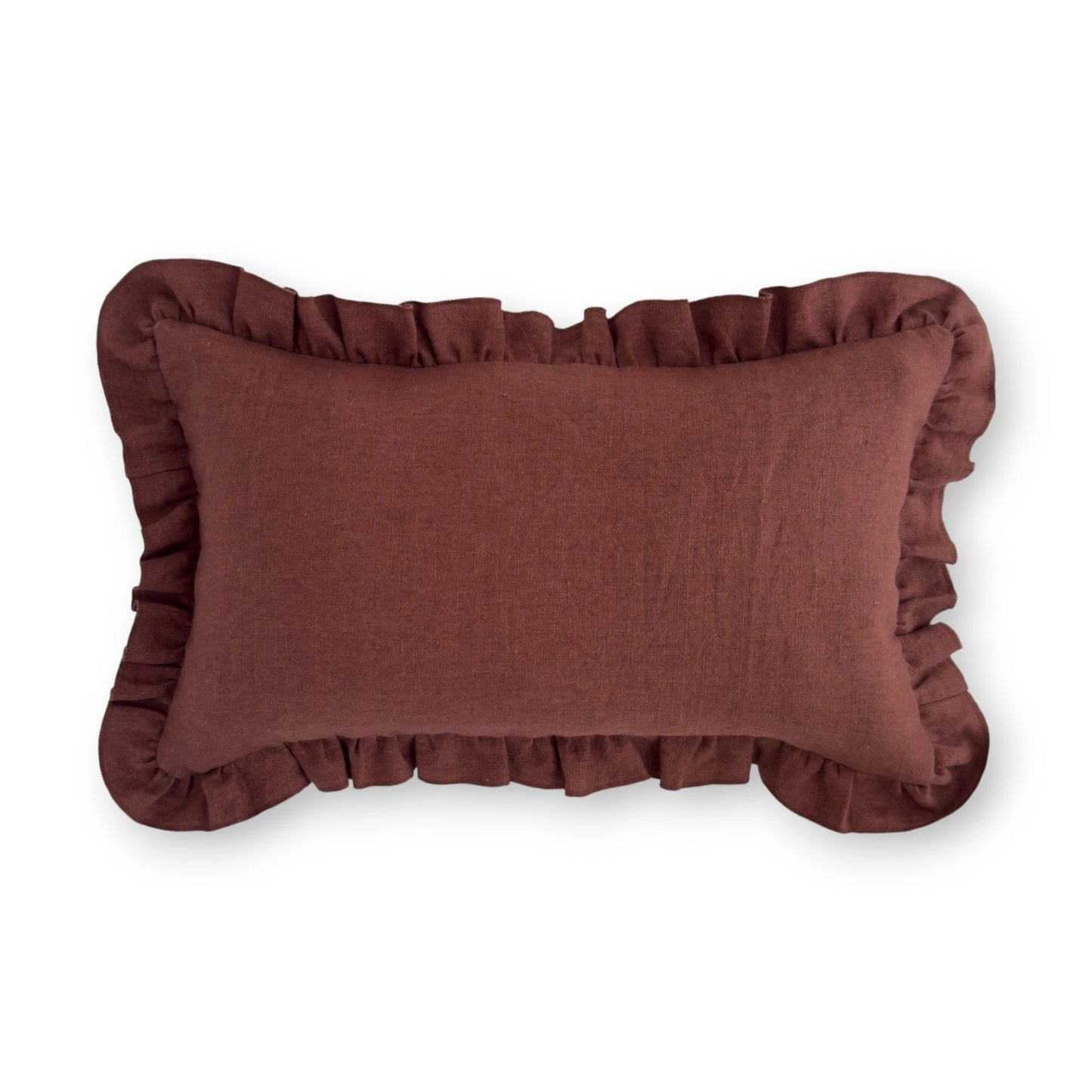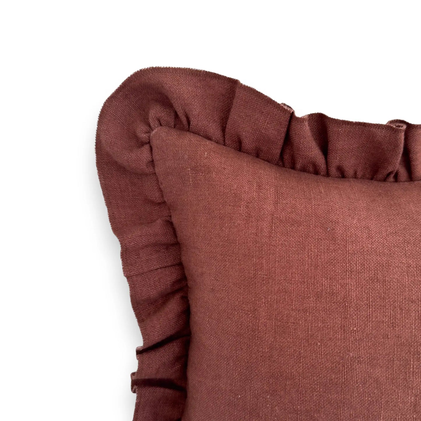 Essential Elegance Linen Ruffle Cushion Cover – Burgundy